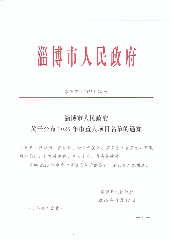 重磅!中科恒源旗下山东超滤环境科技项目入选淄博市2025年重大项目名单