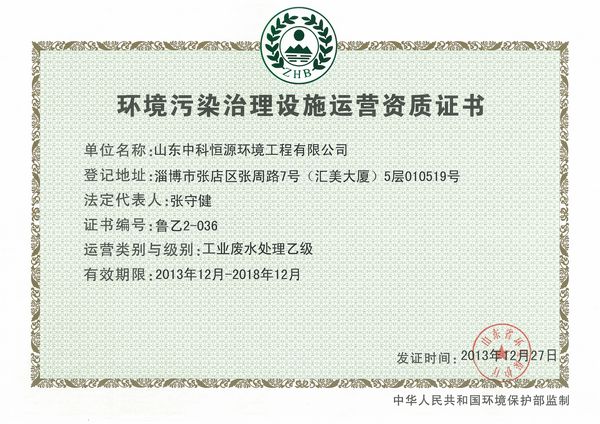 我司再次通过山东省环保厅环境污染治理设施运营资质乙级审核。