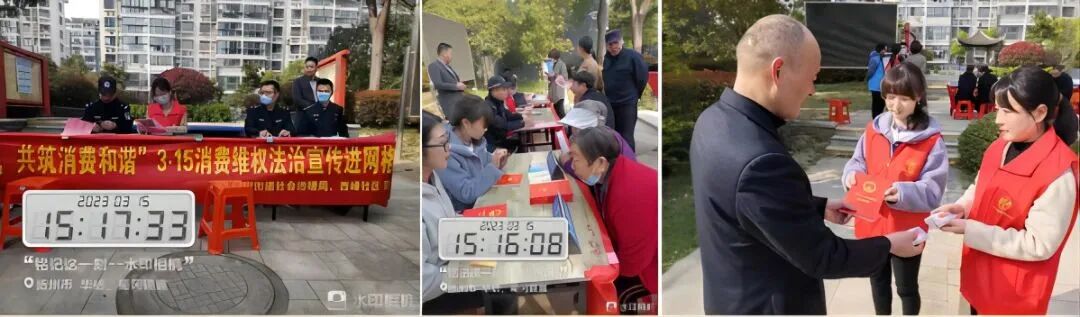 2023年3月15日是第41个国际消费者权益保护日,为提高居民防范意识,引导树立正确消费观和维权观,做一名知法懂法的消费者,当日,西湖街道社会治理局、西峰社区联合中房物业在蜀冈锦宸小区中心广场开展了3·15维权宣传系列活动。